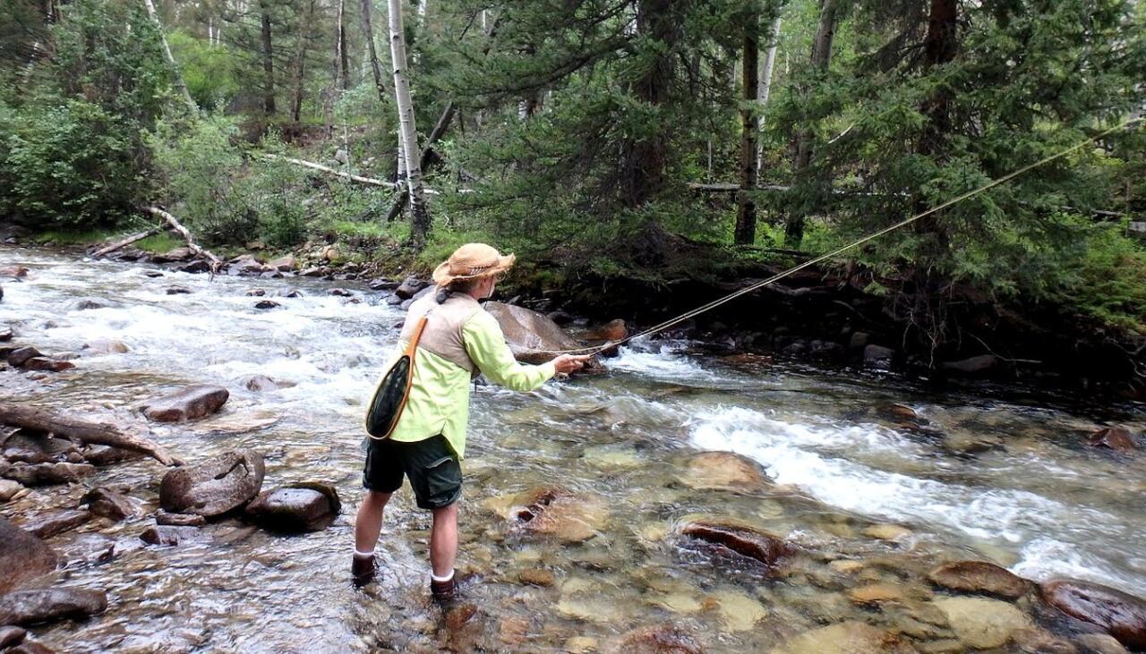 In late September, the water gets extremely clear and low. Downsize your tippet to 6x and focus on the deep plunge pools below the beaver dams. The big Browns move up from the Arkansas River into the creek to spawn in the fallβwatch your step to avoid trampling redds (spawning beds).