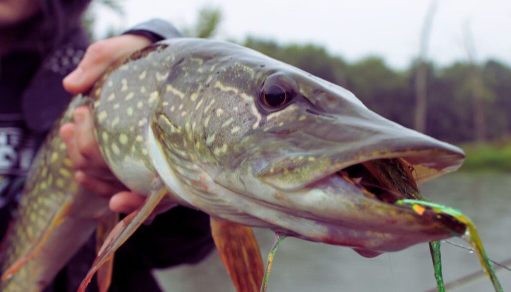 - Pike caught along deep weed edges.